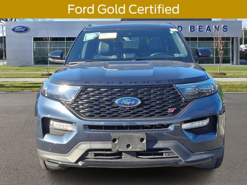 Recent Arrival! 2022 Ford Explorer ST 3.0L EcoBoost V6 10-Speed Automatic 4D Sport Utility Stone Blue Metallic Local Trade, Great Service History, Factory Certified Vehicle, Free First Oil Change, 5 Day Return / 30 Day Exchange, Auto Reward Program, Explorer ST, 4D Sport Utility, 3.0L EcoBoost V6, 10-Speed Automatic, 4WD, Stone Blue Metallic, Ebony w/Leather Htd/Ventilated Sport Captain's Chairs or Leather Htd/Ventilated Sport Captain's Chairs, 10.1" LCD Capacitive Portrait Touchscreen, 2 Additional Speakers, Equipment Group 401A, Evasive Steering Assist, Ford Co-Pilot360 Assist+, Intelligent Adaptive Cruise Control, Speed Sign Recognition, ST High Package, ST Street Pack, Technology Package, Twin Panel Moonroof, Voice-Activated Touchscreen Navigation System.