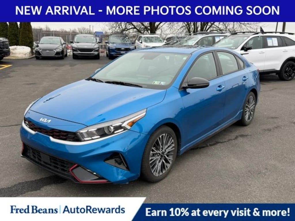 Recent Arrival! 2023 Kia Forte GT-Line 2.0L I4 MPI CVT FWD 4D Sedan Sporty Blue 10-Way Power Driver's Seat, 17" x 7.0J Alloy Wheels, 4-Wheel Disc Brakes, 6 Speakers, ABS brakes, Air Conditioning, Alloy wheels, AM/FM radio: SiriusXM, Apple CarPlay & Android Auto, Auto High-beam Headlights, Automatic temperature control, Brake assist, Bumpers: body-color, Cloth & SynTex Seat Trim, Delay-off headlights, Driver door bin, Driver vanity mirror, Dual front impact airbags, Dual front side impact airbags, Electronic Parking Brake (EPB), Electronic Stability Control, Emergency communication system, Exterior Parking Camera Rear, Forward Collision Avoidance-Assist - Cyclist, Front anti-roll bar, Front Bucket Seats, Front Center Armrest, Front dual zone A/C, Front fog lights, Front reading lights, Front wheel independent suspension, Fully automatic headlights, GT-Line Premium Package, GT-Line Sport Premium Package, Heated & Ventilated Front Seats, Heated door mirrors, Illuminated entry, Leather Shift Knob, Leather steering wheel, LED Interior Lighting, Low tire pressure warning, Navigation System, Navigation-Based Smart Cruise Control (NSCC), Occupant sensing airbag, Outside temperature display, Overhead airbag, Overhead console, Panic alarm, Passenger door bin, Passenger vanity mirror, Power door mirrors, Power steering, Power Sunroof, Power windows, Radio data system, Radio: 10.25" Display Audio, Radio: harman kardon Premium Audio, Rear AC Vent, Rear seat center armrest, Rear USB Charger, Rear window defroster, Remote keyless entry, Security system, Smart Cruise Control w/Stop & Go, Speed control, Split folding rear seat, Spoiler, Sport steering wheel, Steering wheel mounted audio controls, SynTex Seat Trim, Tachometer, Telescoping steering wheel, Tilt steering wheel, Traction control, Trip computer, Turn signal indicator mirrors, Variably intermittent wipers, Wireless Charging.
