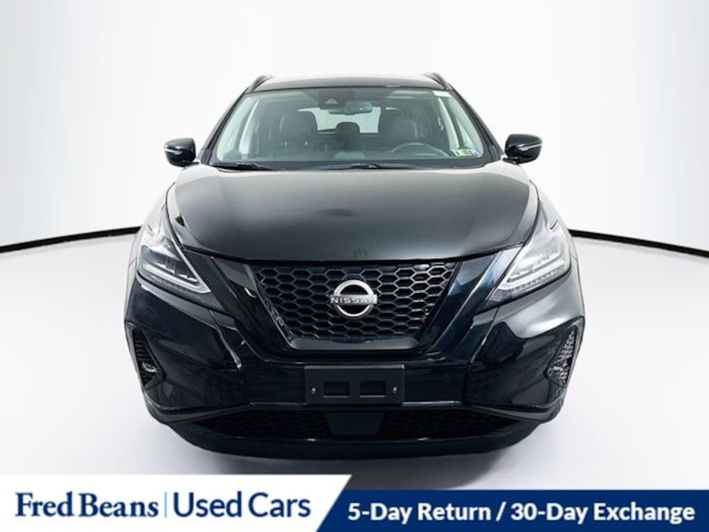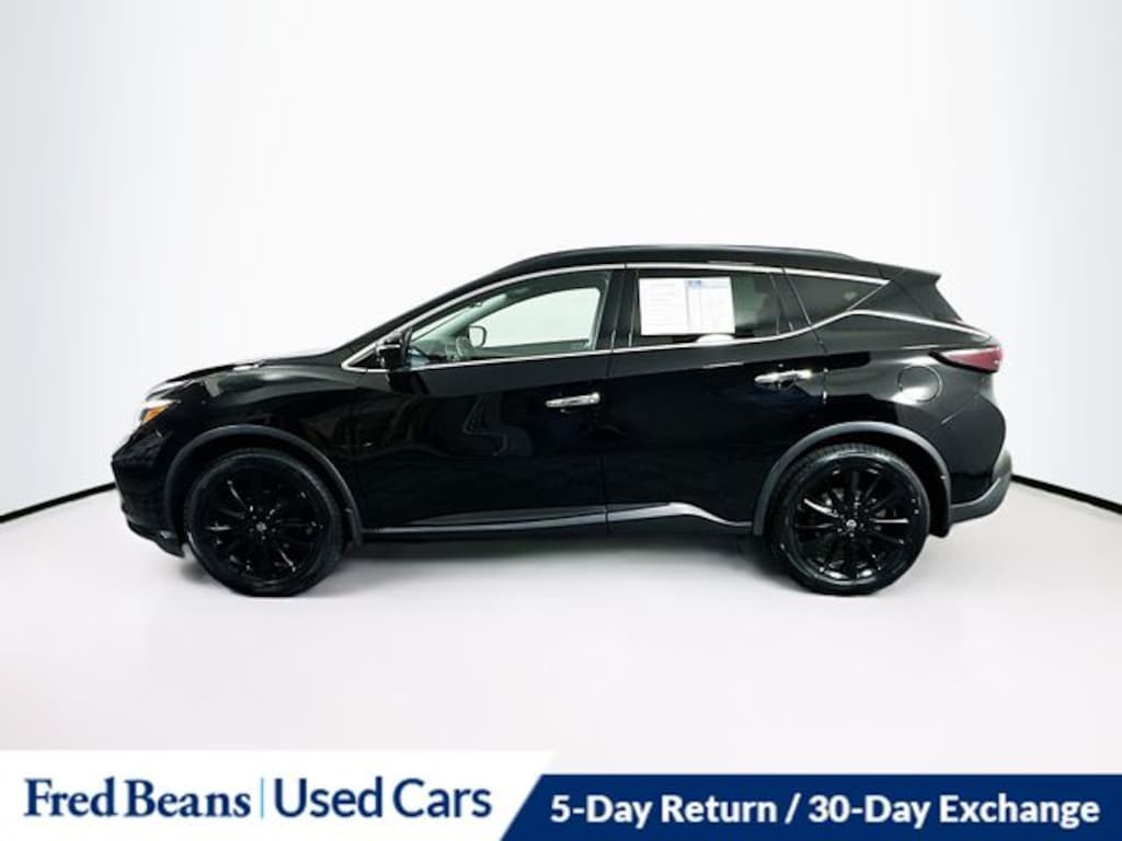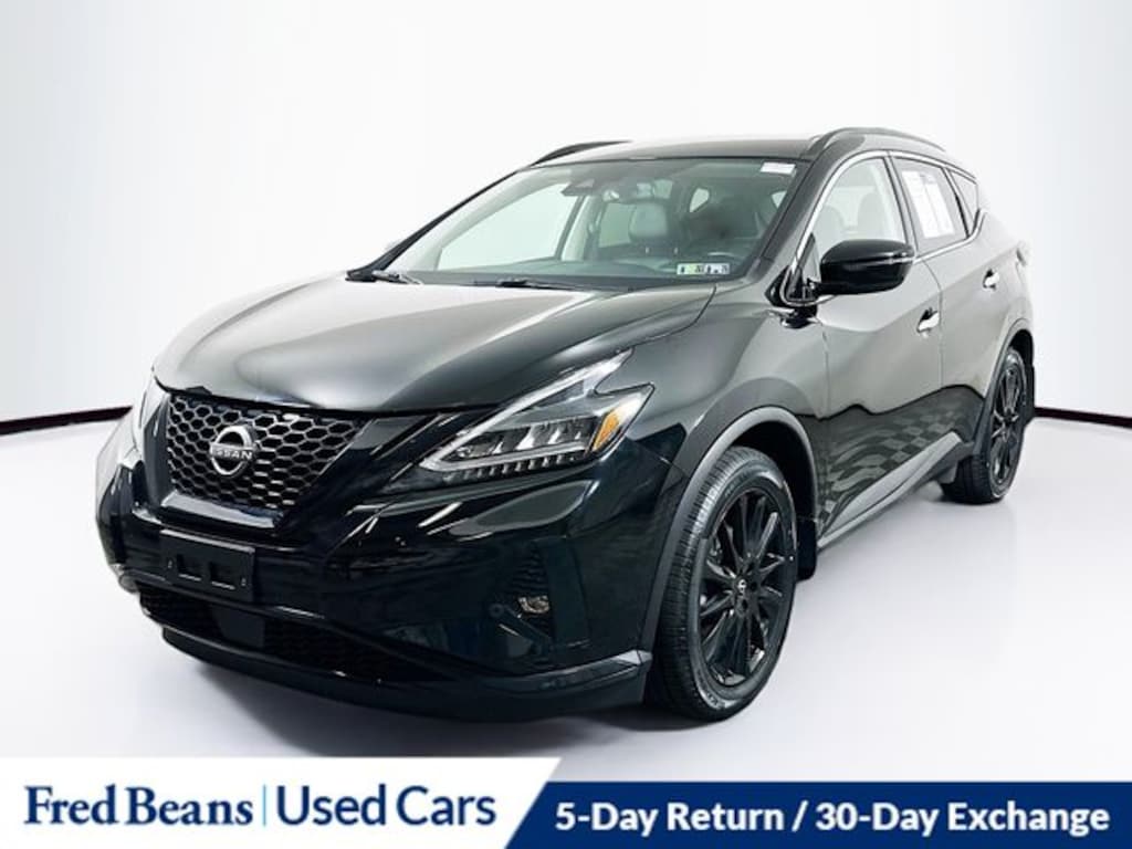 2023 Nissan Murano SV 3.5L V6 DOHC 24V CVT with Xtronic AWD 4D Sport Utility Super Black Great Service History, 7 Year / 100k Powertrain Warranty, Free First Oil Change, 5 Day Return / 30 Day Exchange, Auto Reward Program, CVT with Xtronic, AWD, Black Splash Guards, Illuminated Kickplates, Midnight Edition Badge, SV Midnight Edition Package, Wheels: 20" Gloss Black Aluminum Alloy.