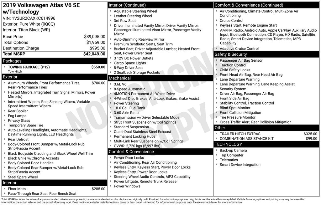 Recent Arrival! 2019 Volkswagen Atlas 3.6L V6 SE w/Technology 3.6L VR6 8-Speed Automatic with Tiptronic AWD 4D Sport Utility Pure White Great Service History, Remainder of Factory Warranty, Factory Certified Vehicle, Free First Oil Change, Auto Reward Program.