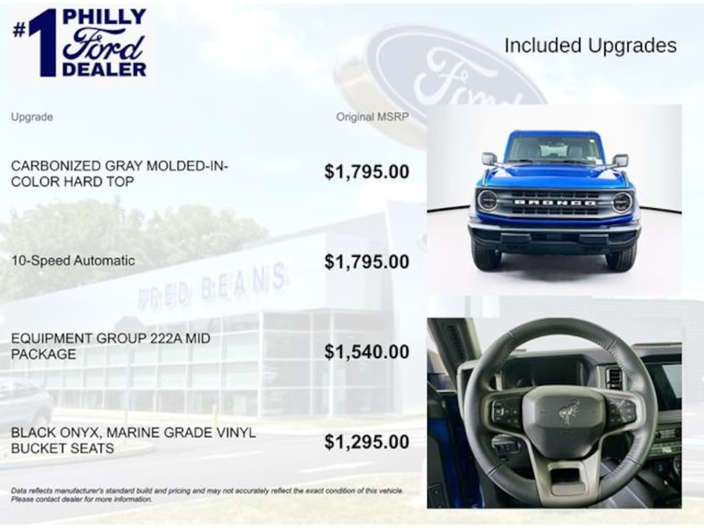 Velocity Blue Metallic 2025 Ford Bronco Big Bend SLOUT 4WD 10-Speed Automatic 2.3L EcoBoost I-4 Price includes: $2750 - Retail Customer Cash