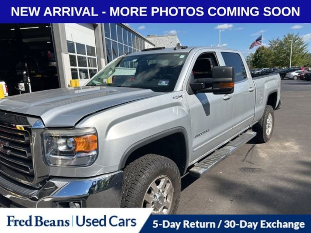 New Price! Recent Arrival! 2015 GMC Sierra 2500HD SLE Vortec 6.0L V8 SFI Flex Fuel VVT 6-Speed Automatic HD Electronic with Overdrive 4WD 4D Crew Cab Quicksilver Metallic AS-IS Vehicle, Free First Oil Change, Auto Reward Program, CALL NOW!!! 908-835-8100, *ONE OWNER, 6-Speed Automatic HD Electronic with Overdrive, 4WD, Black Cloth, 10-Way Power Driver's Seat Adjuster, 110-Volt AC Power Outlet, 18" Polished Aluminum Wheels, 220 Amps Alternator, 4-Wheel Disc Brakes, 4.10 Rear Axle Ratio, 4.2" Diagonal Color Display Driver Info Center, 6 Speakers, 6" Rectangular Chrome Tubular Assist Steps (LPO), ABS brakes, Air Conditioning, Alloy wheels, AM/FM radio: SiriusXM, Auto-Dimming Inside Rear-View Mirror, Bluetooth® For Phone, Body Color Bodyside Moldings, Body-Color Door Handles, Body-Color Mirror Caps, Body-Color Power-Adjustable Heated Outside Mirrors, Bodyside moldings, Brake assist, Bumpers: chrome, CD player, Chrome Front Bumper, Chrome Rear Bumper, Cloth Seat Trim, Color-Keyed Carpeting Floor Covering, Compass, Deep-Tinted Glass, Delay-off headlights, Driver & Front Passenger Visors, Driver door bin, Driver vanity mirror, Dual front impact airbags, Dual front side impact airbags, Dual-Zone Automatic Climate Control, Electric Rear-Window Defogger, Electronic Shift Transfer Case, Electronic Stability Control, Emergency communication system: OnStar Directions & Connections, Exterior Parking Camera Rear, EZ-Lift & Lower Tailgate, Front 40/20/40 Reclining Split-Bench Seat, Front anti-roll bar, Front Center Armrest w/Storage, Front Halogen Fog Lamps, Front reading lights, Front wheel independent suspension, Fully automatic headlights, Heated door mirrors, Heated Driver & Front Passenger Seats, Heavy-Duty Trailering Equipment, Illuminated entry, Leather-Wrapped Steering Wheel, LED Cargo Box Lighting, Low tire pressure warning, Manual Tilt-Wheel/Telescoping Steering Column, Occupant sensing airbag, OnStar 4G LTE Wi-Fi Hotspot, OnStar 6 Months Directions/Connections Plan, Outside temperature display, Overhead airbag, Overhead console, Panic alarm, Passenger door bin, Passenger vanity mirror, Power door mirrors, Power steering, Power windows, Power Windows w/Driver Express Up & Down, Power-Adjustable Black Heated Outside Mirrors, Provision for Cab Roof-Mounted Lamp/Beacon, Radio: AM/FM/SiriusXM, Radio: AM/FM/SiriusXM w/Navigation, Rear 60/40 Folding Bench Seat (Folds Up), Rear Bumper Cornersteps, Rear reading lights, Rear seat center armrest, Rear step bumper, Rear Vision Camera w/Dynamic Guide Lines, Rear Wheelhouse Liners, Remote Keyless Entry, Remote keyless entry, Remote Vehicle Starter System, Single Slot CD/MP3 Player, SiriusXM Satellite Radio, SLE Decor, SLE Preferred Package, Smoked Amber Roof Marker Lamps, Snow Plow Prep Package, Speed control, Split folding rear seat, Standard Suspension Package, Steering Wheel Audio Controls, Steering wheel mounted audio controls, Tachometer, Theft Deterrent System (Unauthorized Entry), Tilt steering wheel, Traction control, Trip computer, Universal Home Remote, Variably intermittent wipers, Voltmeter.